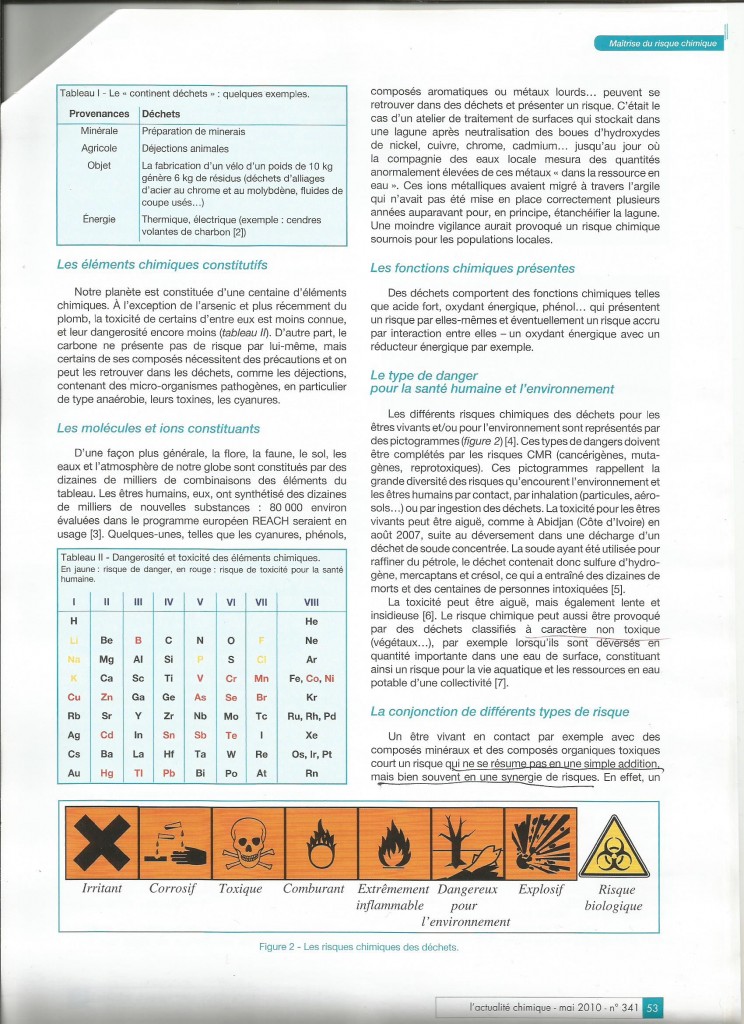 Le risque chimique spécifique aux déchets Posted octobre 9th, 2013 by admin & filed under Développement Durable - Santé Publique. Tweet Bookmark on Delicious Digg this post Recommend on Facebook share via Reddit Share with Stumblers Tweet about it Subscribe to the comments on this post « Previous Post Next Post »